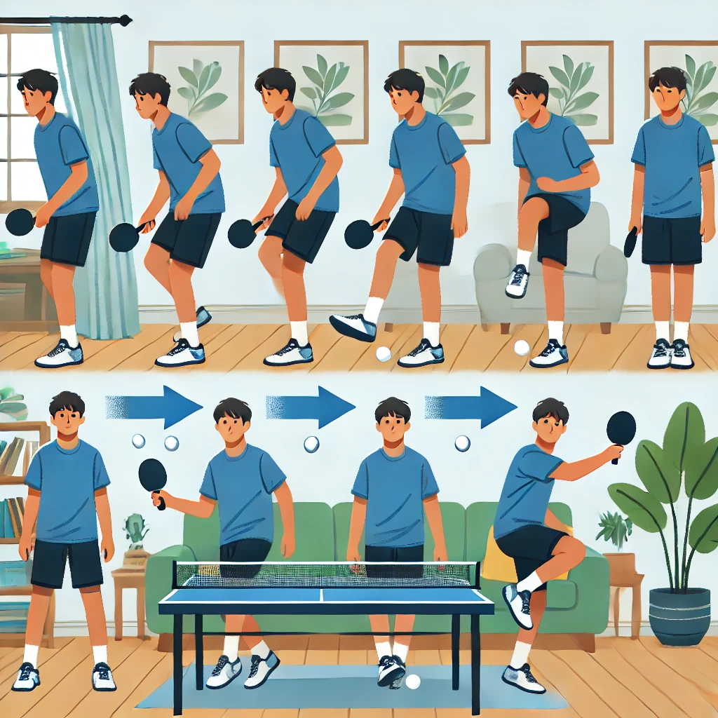 탁구에서는 빠르게 이동하면서 공을 치는 능력이 중요합니다. 집에서도 간단한 풋워크 훈련을 통해 민첩성을 향상할 수 있습니다.